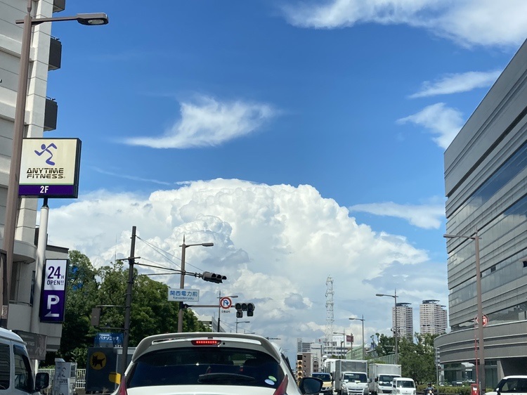 こちらは会社近くの道路で夏らしい、入道雲と空がとてもきれいだったので、写真に収めました。