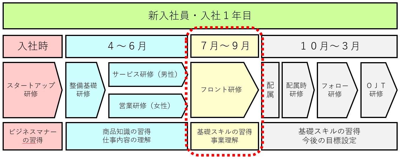 現在、新入社員はフロント研修を実施しています!