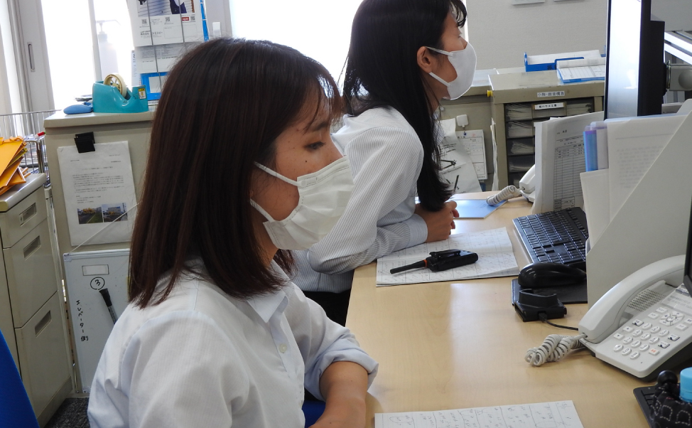 フロントのお仕事は、電話やお客様対応、機械の在庫管理など、同時にすることが多く大変なときもありますが、上司・先輩に助けてもらいながら、毎日お仕事をしています。